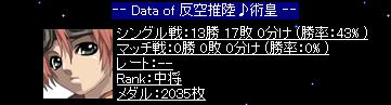 シングル戦:13勝 17敗 0分け (勝率:43% )
